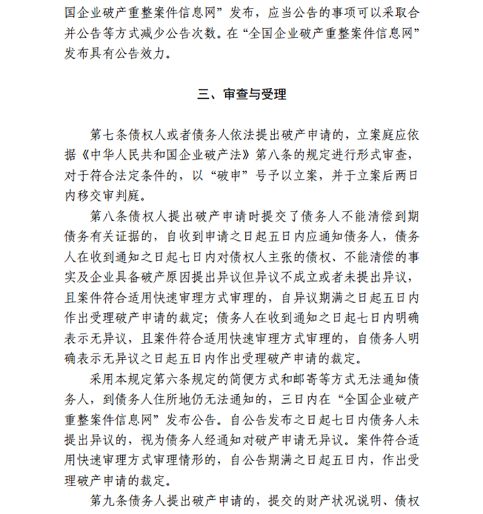 天津市关于适用快速审理方式审理破产案件的审判委员会纪要